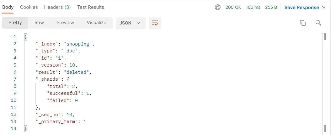 在 Postman 中,向 ES 服务器发 DELETE 请求 :http://127.0.0.1:9200/shopping