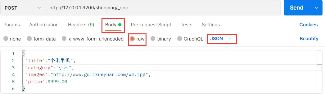 请求 :http://127.0.0.1:9200/shopping/_doc