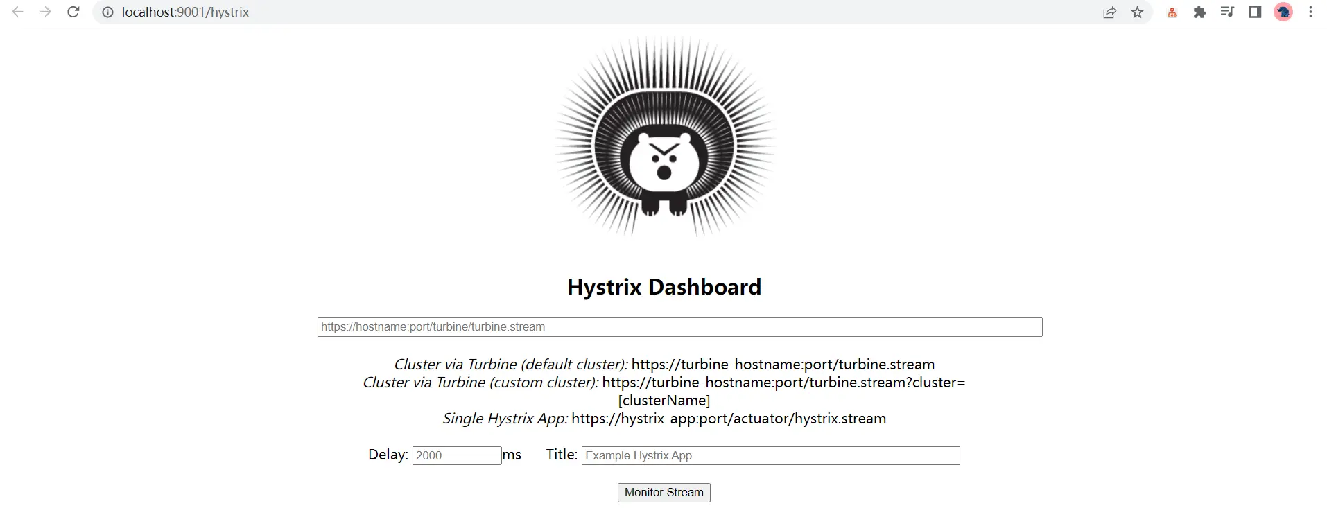 </dependency>浏览器输入http://localhost:9001/hystrix (opens new window)