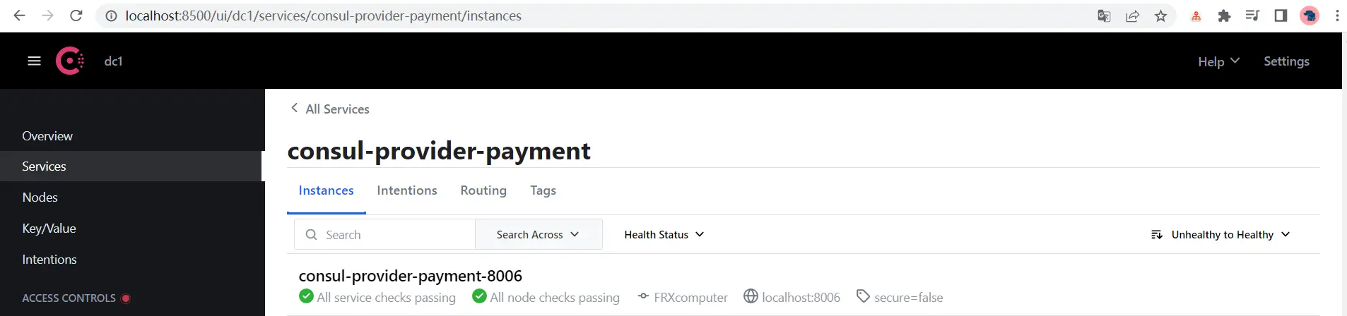 Protocol 2 spoken by default, understands 2 to 3 (agent will automatically use protocol >2 when speaking to compatible agents)consul agent -dev:浏览器输入 - http://localhost:8500/ - 打开Consul控制页。