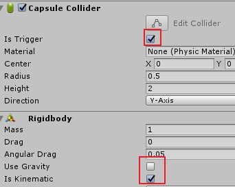 创建一个Capsule作为学生,挂上NavMeshAgent(用于自动寻路)和rigidbody(用于检测感染)后保存为prefab,便于创建时复制。为了节省性能,关闭了物理效果,碰撞器改为触发器。