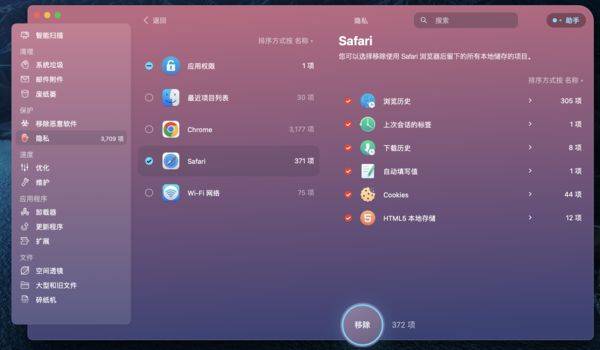 日常使用Mac的过程中,“浏览器”同样是一个高频的应用。我始终认为定期清理浏览器的访问记录、已存储的密码等可以更好地保护隐私,而CleanMyMac X便可帮助我们一键清除这些存储在本地的信息,确保隐私信息不外泄。
