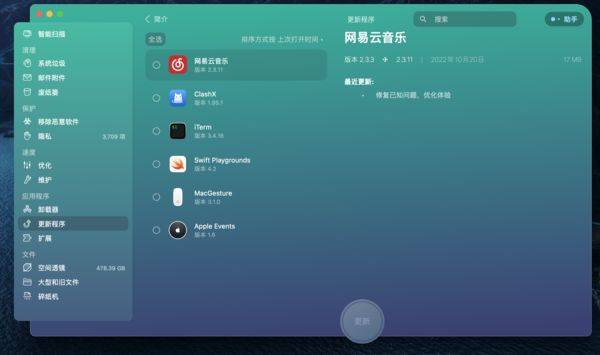 CleanMyMac X支持应用更新功能