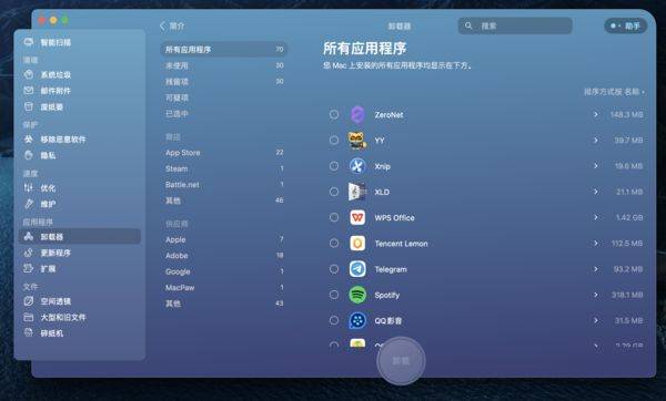 使用CleanMyMac X的“卸载器”卸载应用
