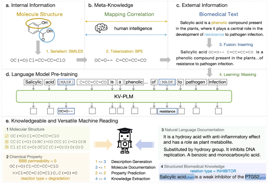 论文摘要:为了加速生物医学研究进程,人们开发了深度学习系统,通过大规模的生物医学数据来自动获取分子的知识。受人类从分子结构和生物医学文本信息中学习分子知识的启发,作者提出了一个知识型机器阅读系统,在一个统一的深度学习框架中衔接这两类信息,为生物医学研究提供全面帮助。这篇文章解决了现有的机器阅读模型只能分别处理不同类型的数据的问题,从而实现对分子的全面彻底的理解。通过以无监督的方式掌握不同信息源内部和之间的元知识,该系统可以促进各种现实世界的生物医学应用,包括分子性质预测、生物医学关系提取等。实验结果表明,该系统在分子性质的理解能力上甚至超过了人类专业人士,同时也揭示了它在促进未来自动药物发现和记录方面的巨大潜力。