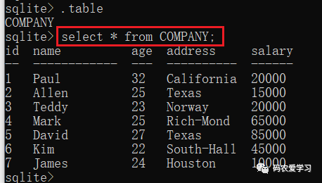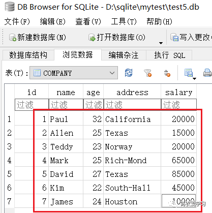 注意,这里的7条数据,从name、age、address列可以看出,这是7个不同的员工。