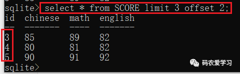 结果如下图所示,可以看出该指令筛选出了从第2条数据之后的3条数据,即id 3~5: