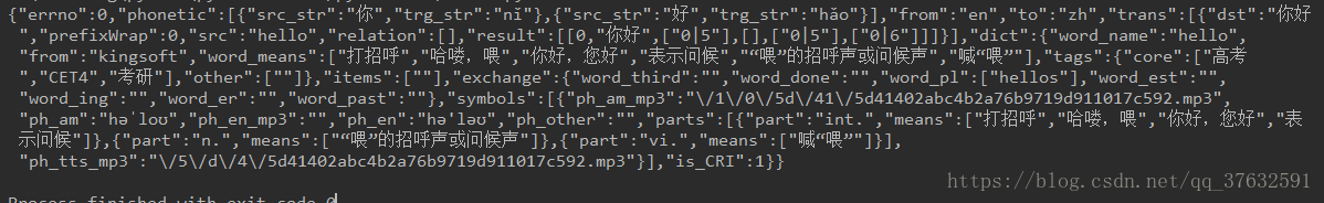 3.筛选自己需要的数据,如:ss["data"][0]["dst"]