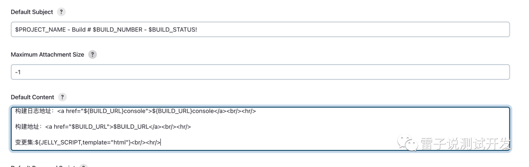 ${DEFAULT_CONTENT}:这是Jenkins系统配置页面默认配置的邮件内容主体