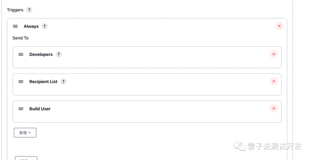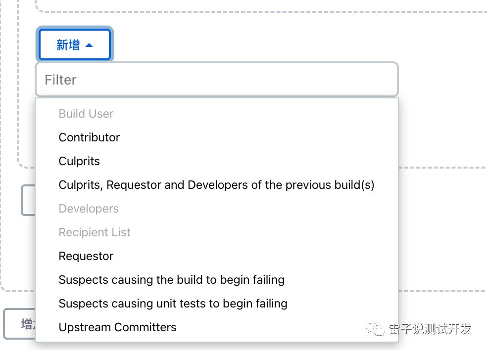 Send to Committers:该邮件会发给上次构建时检查过代码的人员,该插件会基于提交者的ID和追加Jenkins配置页面的(default email suffix)默认邮件后缀来生成一个邮件地址。譬如,上次提交代码的人是”first.last”, 默认的电子邮件后缀为“@somewhere.com”,那么电子邮件将被发送到“first.last@ somewhere.com”。