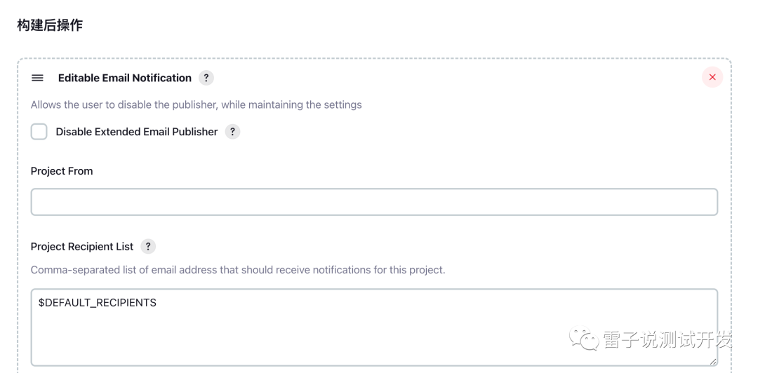 Project Recipient List:这是一个以逗号(或者空格)分隔的收件人邮件的邮箱地址列表。允许您为每封邮件指定单独的列表。Ps:如果你想在默认收件人的基础上添加收件人:$DEFAULT_RECIPIENTS,<新的收件人>