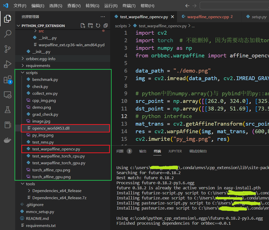 接下来,再来看 PyTorch 的 CUDA 扩展,首先测试文件 test_warpaffine_torch_gpu.py 如下: