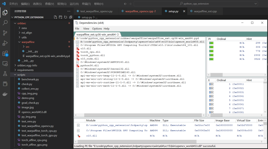 loss: torch.Tensor = module_partial_fc(local_embeddings, local_labels, opt)【注】:本工程编译完成后,可以将 orbbec 文件夹直接拷贝自己的训练工程,然后在对应的需要调用拓展函数的 Python 文件中(比如上述代码在 train.py 文件中),通过之前提到的方法,将 orbbec 文件夹所在路径加入到 Python 环境中,就可以正常调用拓展函数了(比如:affine_torch)。