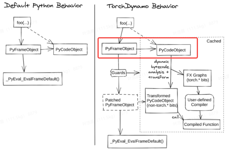 回调函数会解析重构 frame 中原有的字节码,并在过程中追踪模型执行图结构。当然了,帧评估时也不是每次都会调用回调函数,例如某个 frame 已经被解析重构过了(cached),此时就会直接执行缓存里已经重构好的代码。