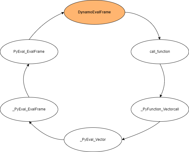 backend_ctx.__exit__(None, None, None)传入的回调函数会被自定义的帧评估函数调用(https://github.com/pytorch/pytorch/blob/e33f1eeeb73a8d680b8aae7944011389f76faaff/torch/csrc/dynamo/eval_frame.c#L400)。