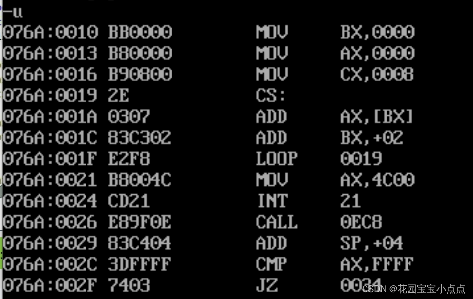 首先,我们来看一个问题,就是编程计算0123H,0456H,0789H,0abcH,0defH,0fedH,0cbaH,0987H的和,结果存在ax寄存器中。看起来还是比较简单的,用简单的加法指令可以完成,但是这样会有一个问题,就是我们的程序和代码就是混在一起的,不仅导致程序混乱,也让人难以理解。 我们在使用C语言的时候,知道可以定义一个数组来解决这样的问题,但是在汇编中也没有数组啊,这可怎么办,别急,我们自有办法,那就是代码段。
