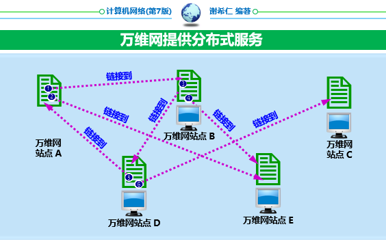 - 万维网是分布式超媒体系统, 是超文本系统的扩充。一个超文本由多个信息源链接成。超媒体与超文本的区别是文档内容不同。超文本文档只包括文本信息,而超媒体文档还包括图形、声音等信息。