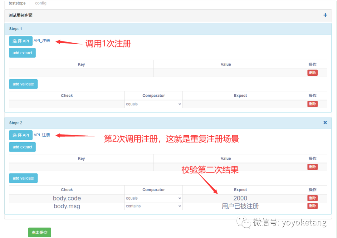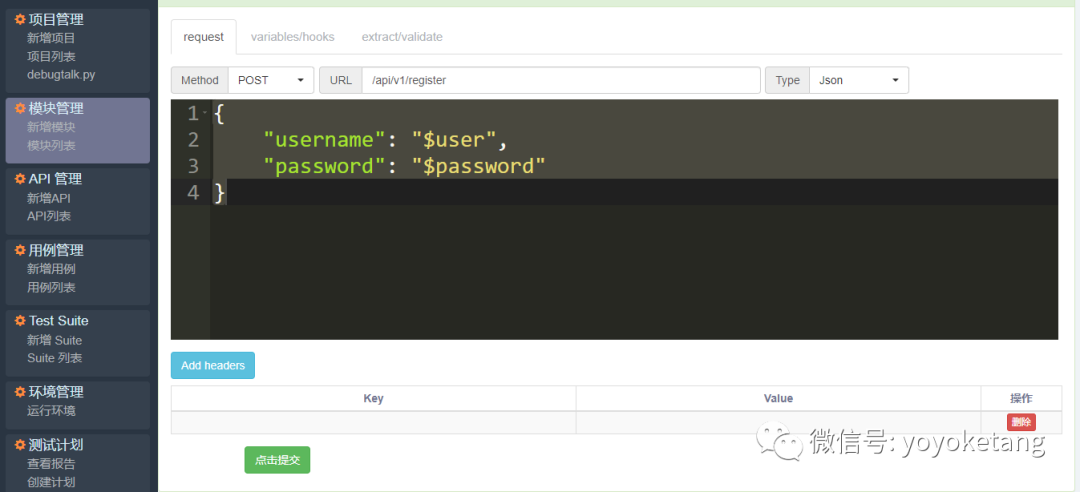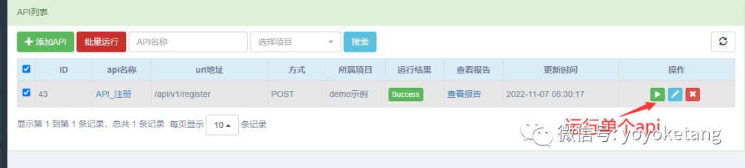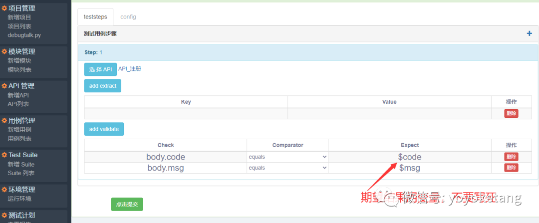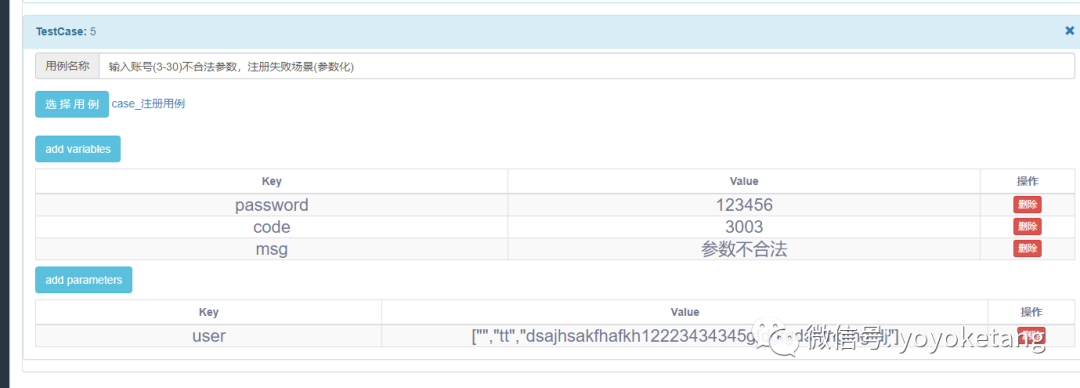 以注册接口为例,在平台上演示如何维护接口自动化用例 访问地址http://47.108.155.10/login.html 用户名: demo, 密码: demo123 有兴趣的可以自己去查看用例规范 和 运行效果。
