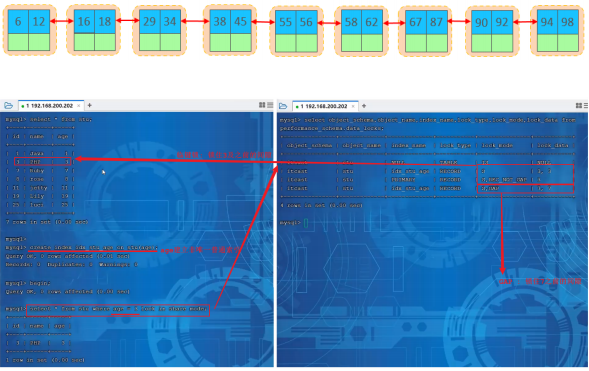 查询的条件为id>=19,并添加共享锁。此时我们可以根据数据库表中现有的数据,将数据分为三个部