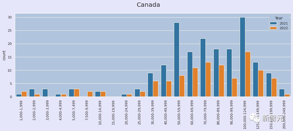 另一个高赞参赛选手使用Python研究了各个国家调研受访者的薪酬范围,单位为美元。