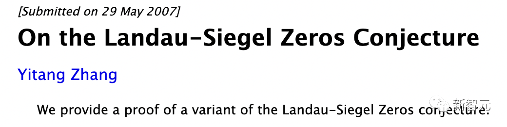 其实早在2007年,张益唐就在arxiv提交了一篇名为On the Landau-Siegel Zeros Conjecture文章,却无人问津。