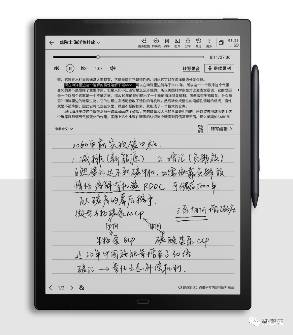 将手写与录音转写完美结合的智能笔记系统在MAX也同样好用,无论是中小型会议,还是大型学术讲座、研讨会,都可以一边用MAX进行录音并实时转写,一边在下方手写要点,会后回顾时,点击手写要点就能够播放对应时间轴上的录音,并高亮展示转写文字。