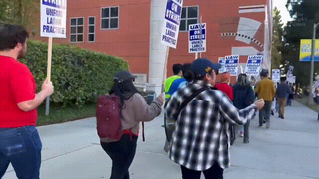 据悉,四个UAW工会谈判代表已经在加州大学所有10个校区进行纠察,确保「罢工成功」。