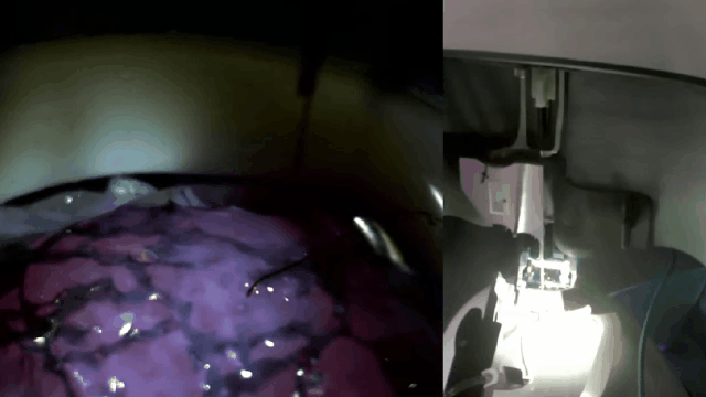 而进行人体植入的装置,由一个微型设备、一个连接电极的电线以及一个叫R1 robot的机器人组成。