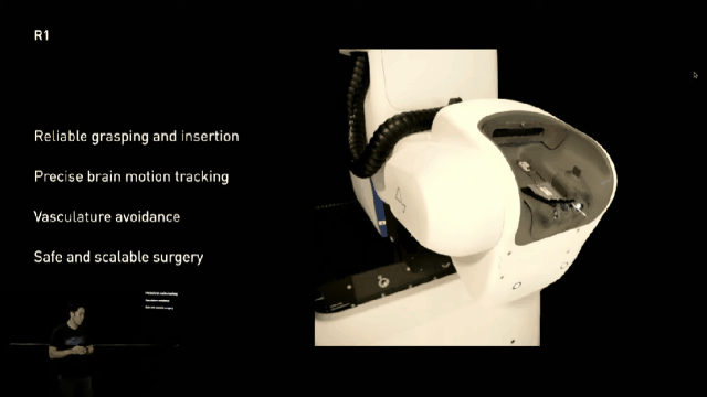 R1机器人可以切开人的头骨,然后将植入物植入大脑。