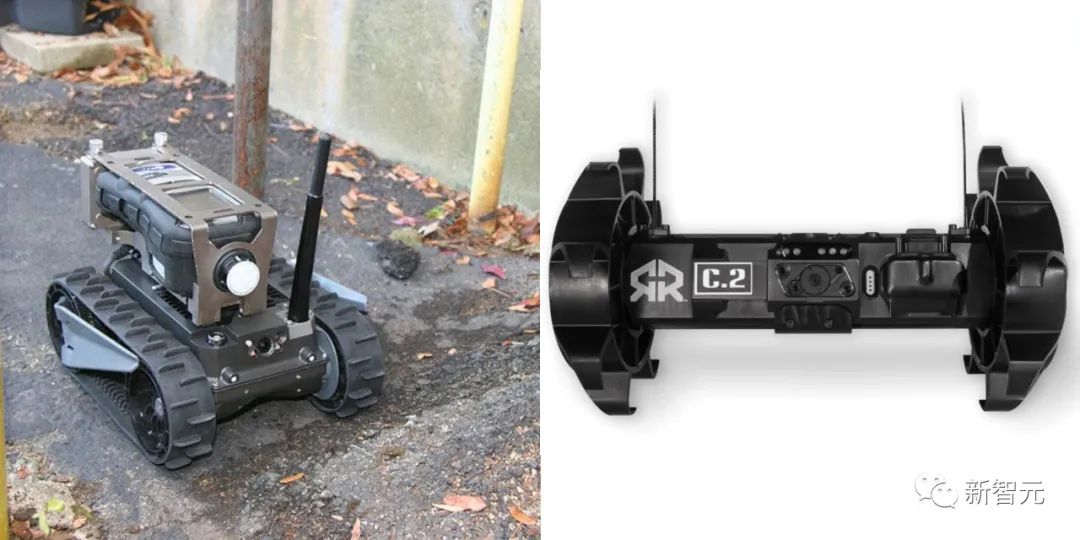 另一种是用于目标区域侦察和监视的小型机器人,如FirstLook(左)和Recon Robotics Throwbot(右)。