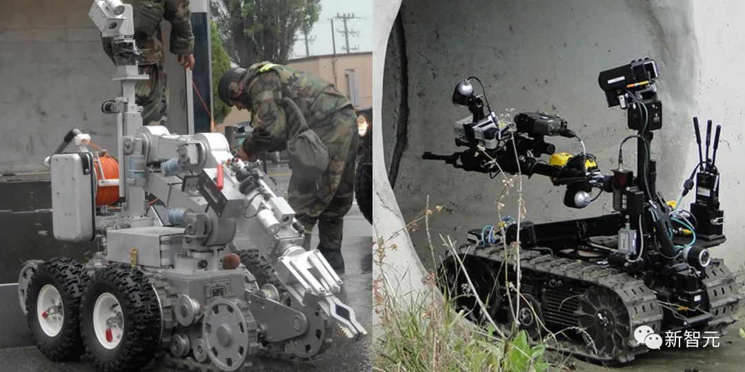 这些机器大致可分为两类。一种是用于远程检查或引爆爆炸物的大型和中型履带式机器人,如Remotec F6A(左)和Qinetiq Talon(右)。