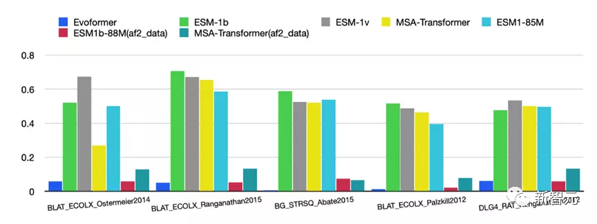 (4)与ESM-1b和MSA-Transformer相比, Evoformer在零样本突变任务上表现很差。