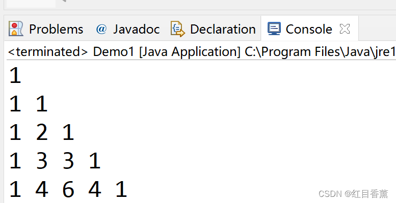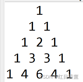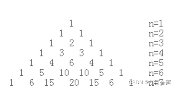 以上的输出过程我们总结一下:杨辉三角的两个腰边的数都是1,从第3行起,除第一个数和最后一个数外,其它位置的数都是上顶上两个数之和。