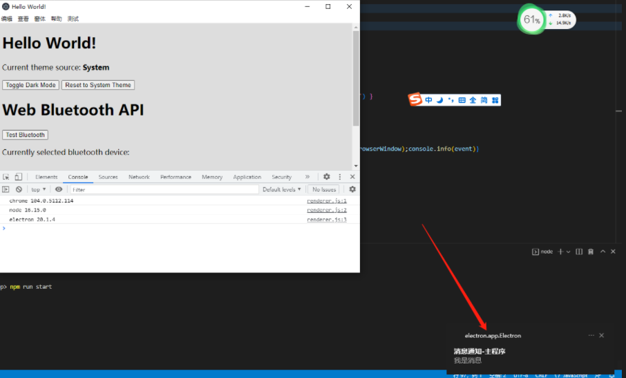 Electron中,与GUI相关的模块(如 dialog, menu 等)只存在于主进程,而不在渲染进程中
