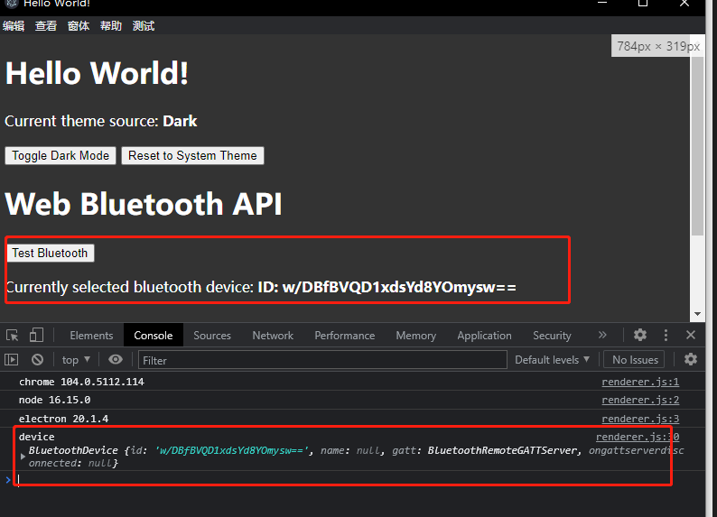 <p>Currently selected bluetooth device: <strong id="device-name"></strong></p>