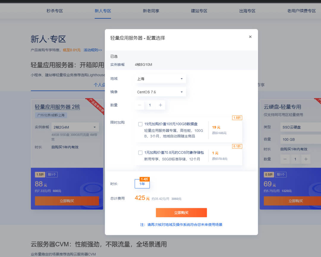 果断新注册账号,买了一个轻量级服务器,和普通的没啥区别,4核8G10M,一年420,还能接受。