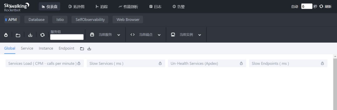 目前还没有任何数据,接下来需要在Client客户端中配置代理探针。