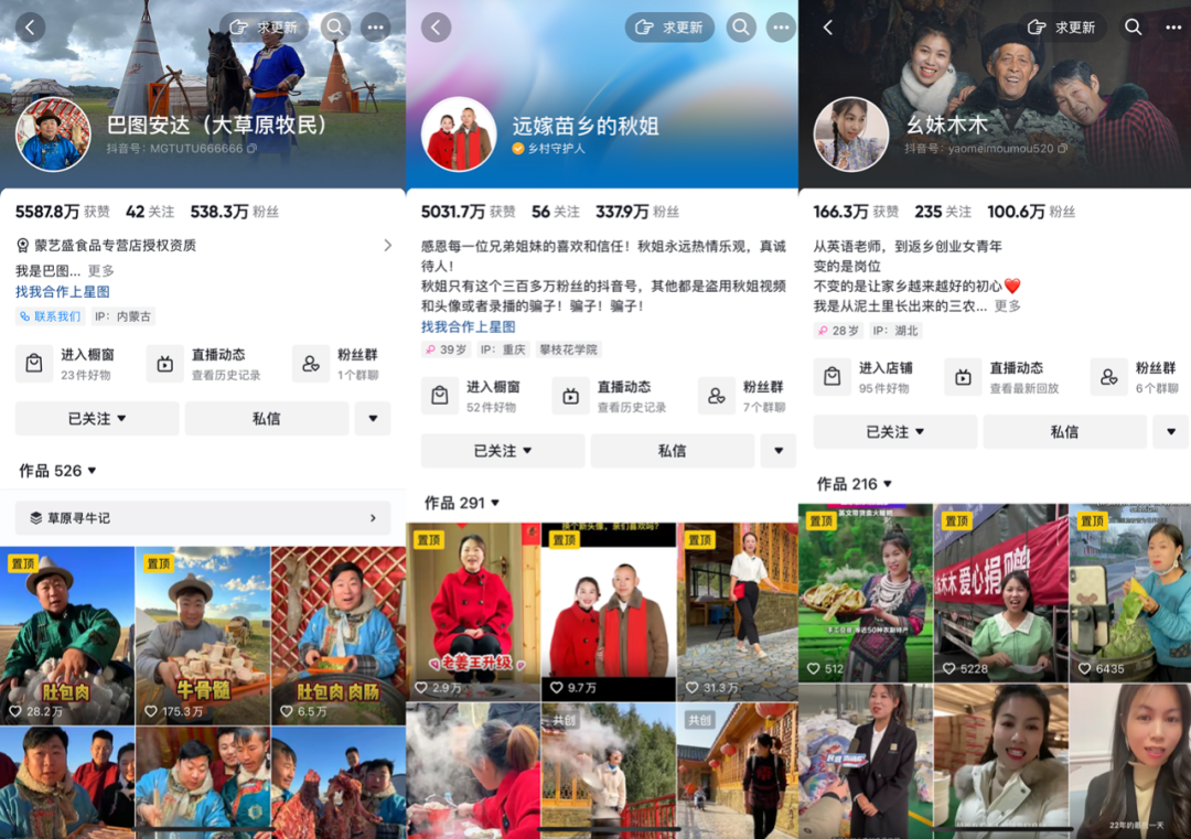 像来自乌珠穆沁草原的@巴图安达,通过展现家乡壮美风光和民俗,就吸引了500多万粉丝关注,在抖音电商带货推广肚包肉,首场就卖出上万单。