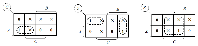 输出变量为绿灯G、黄灯Y、红灯R。 逻辑1:灯亮; 逻辑0:灯灭。