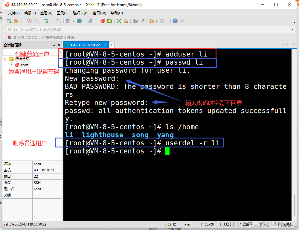 [root@vm-8-5-centos ~]# adduser name