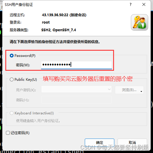 (3)填写公网IP下root用户的密码