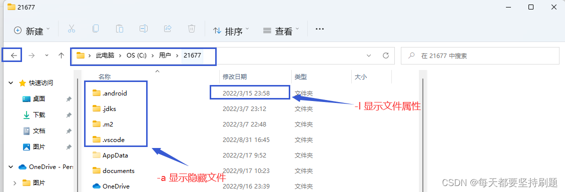 PS:在每一个目录都存在一个名为 . 和名为 .. 的文件