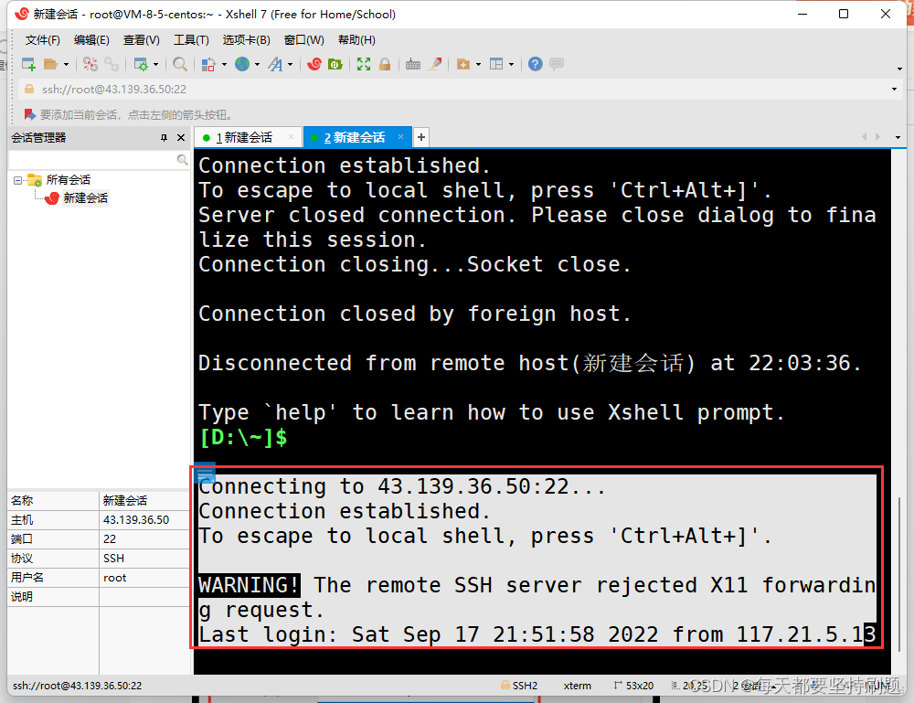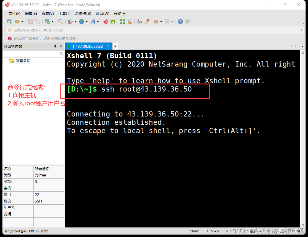 但是前面的(1)(2)都可以用命令行来一步代替: ssh root@43.139.36.50