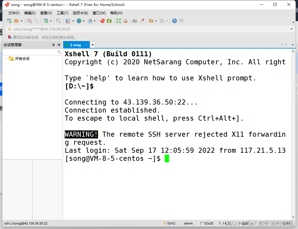 PS:我下面的操作都是基于Linux云服务器和Xshell远程连接来操作的(这里直接跳过安装)