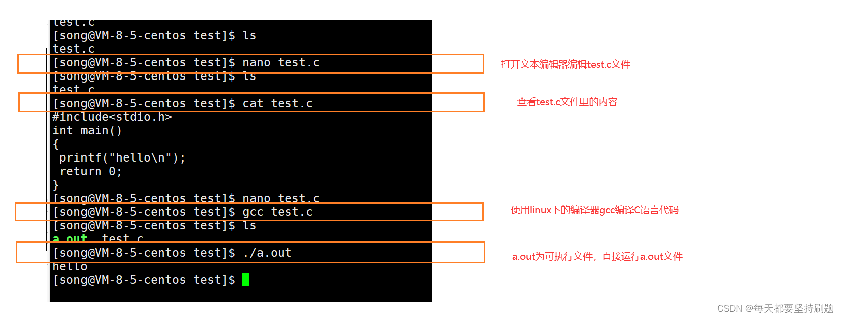 如果我创建了一个test.c文件,我想在Linux下编译运行,我该怎么做呐?