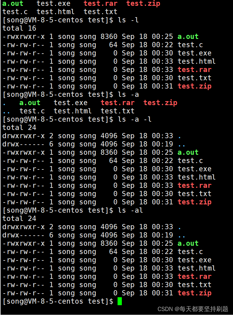 -l : 显示文件内容列表及其更详细的文件属性 -a:显示隐藏文件(Linux下以 . 开头的文件是隐藏文件) 选项是绝大部分都是可以合并的