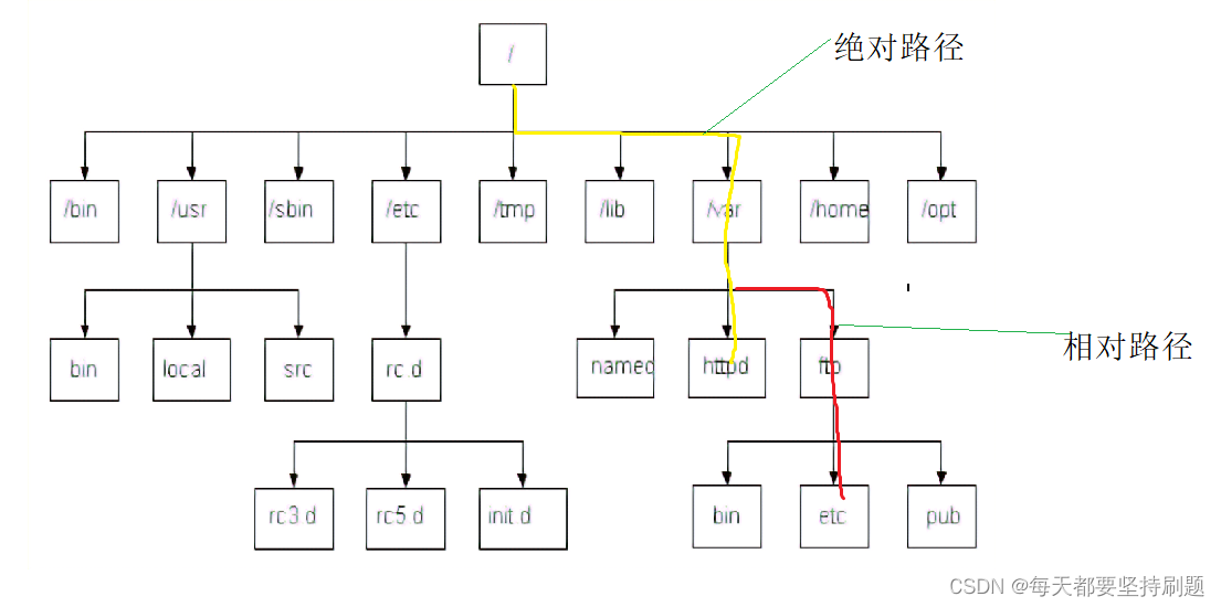 问题:为什么采用路径的方式可以唯一定位一个文件? 答案:定位一个文件,无非就是回答两个问题:我在哪里?我是谁?通过这个Linux目录树的方式,每一个子节点都只有一个父节点,所以从根目录到目标文件都只有唯一的路径,这也就是绝对路径;