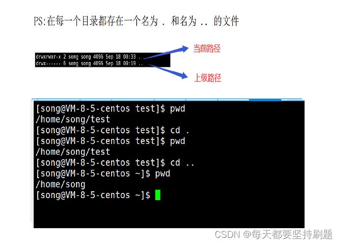 6.cd /home/song/dir 使用的是绝对路径,而cd ..使用的是相对路径