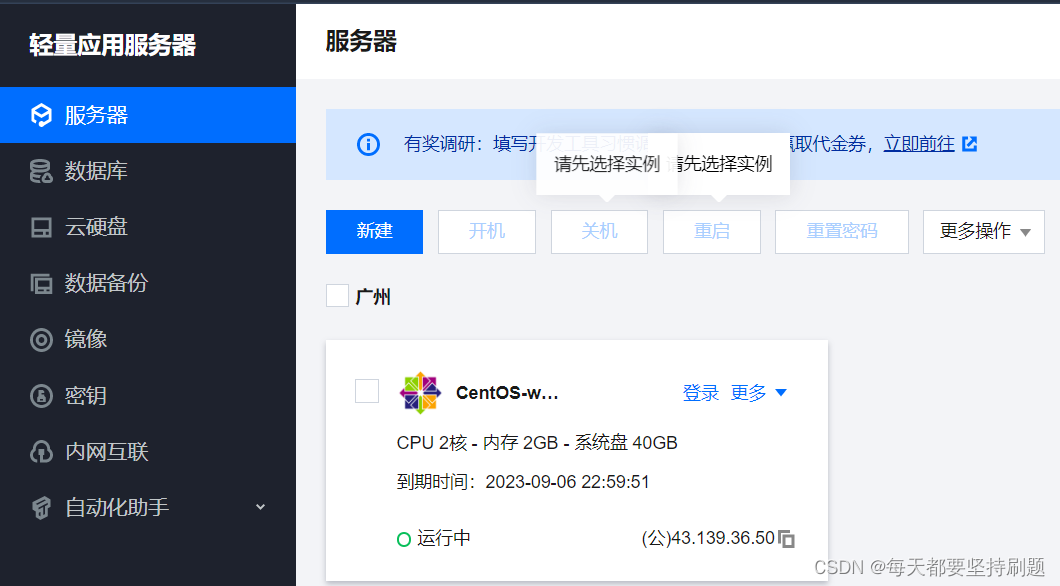 第一步:让我们登入root用户,注意:在购买云服务器时记得重置root用户密码为较为复杂且自己记得住的密码,复杂一点是防止恶意扫描,用来挖矿等不良活动。