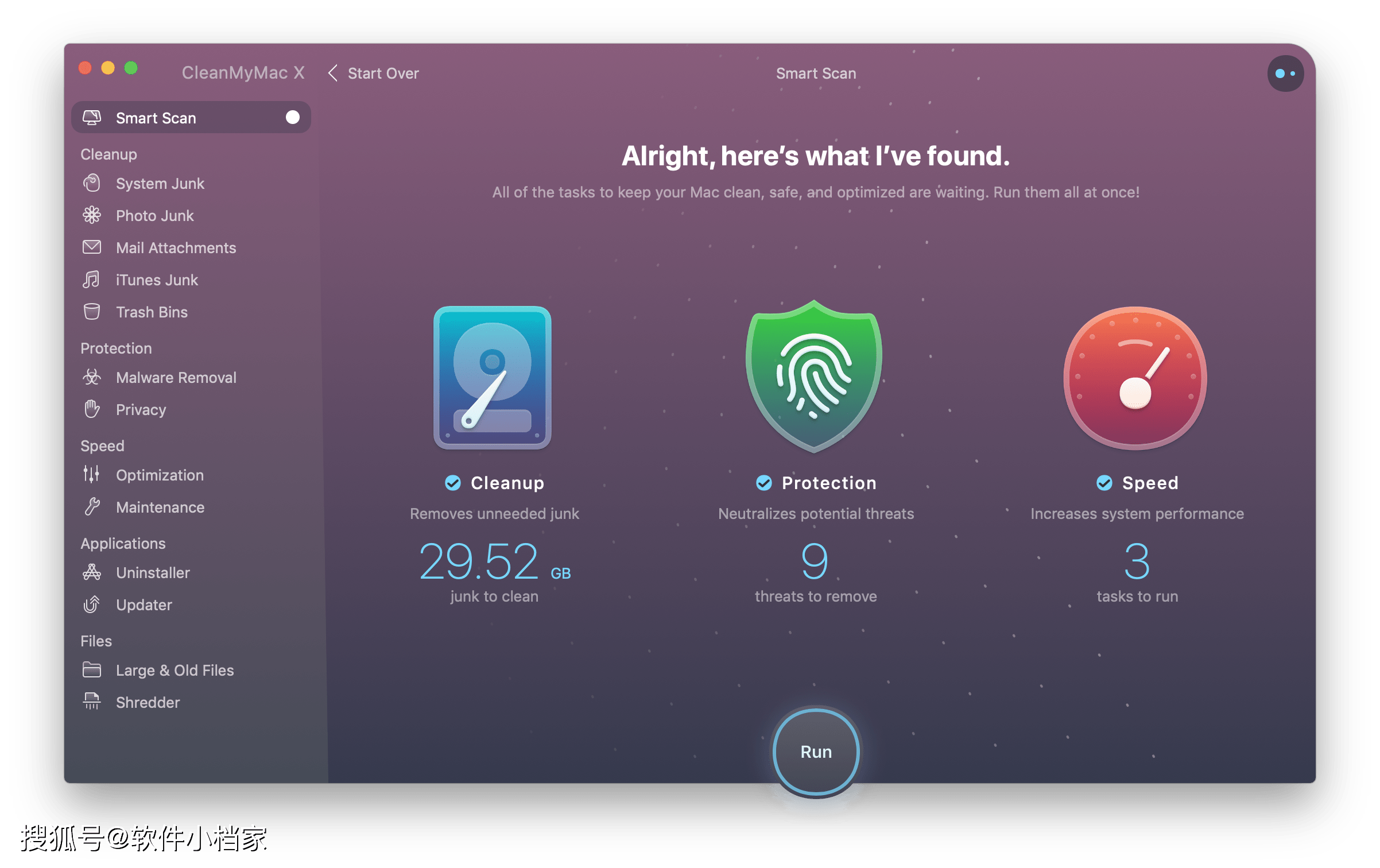 CleanMyMac 4.12.3展示清洁的内容,您只需选择何时清洁。扫描Mac上的所有内容,包括Mac的系统,iTunes,Mail,iPhoto,垃圾箱,甚至是秘密避开你的旧文件夹。此外,它确切地知道可以从Mac安全清除什么,什么不可以。几乎像它有一个大脑或什么的。